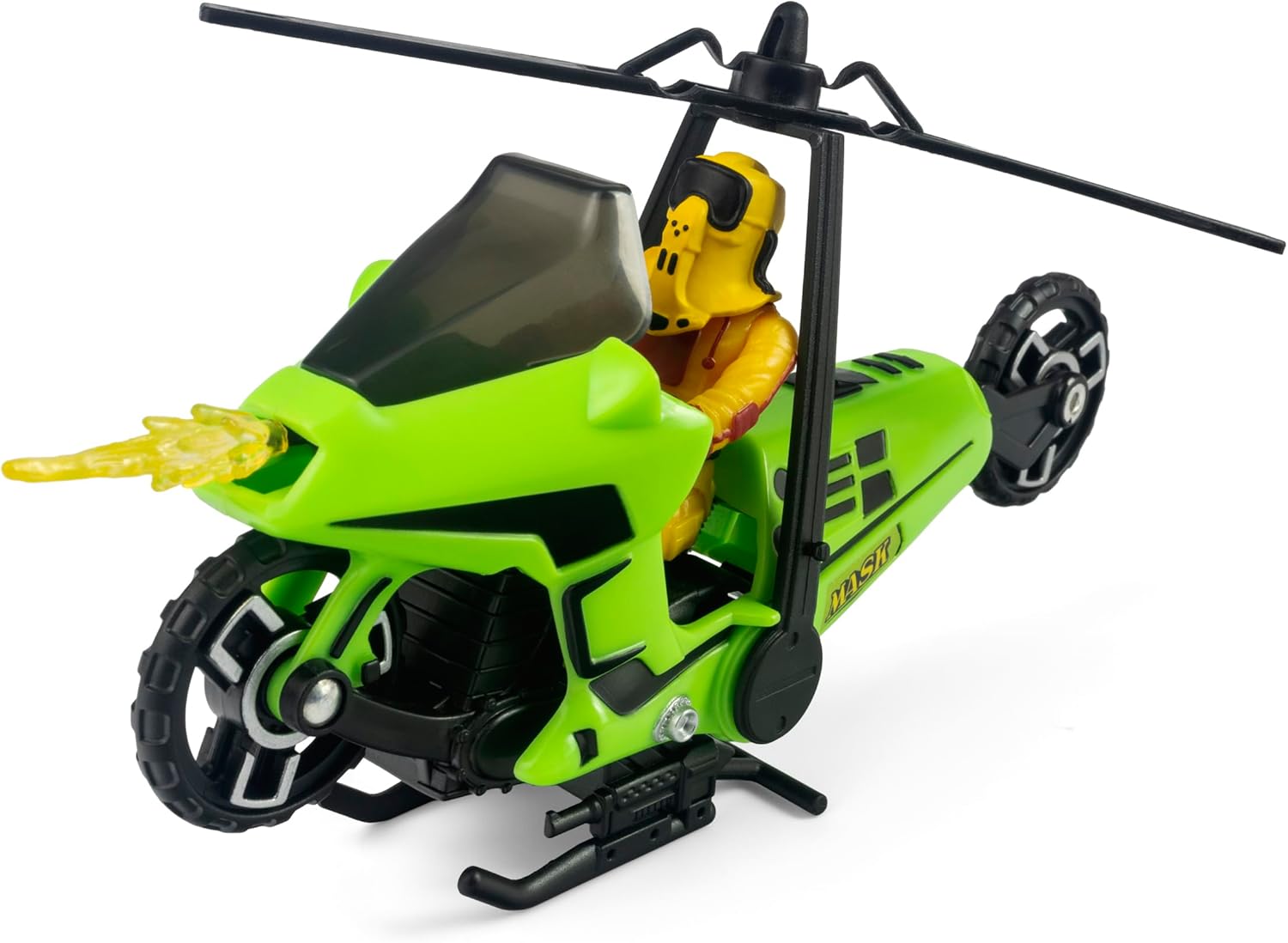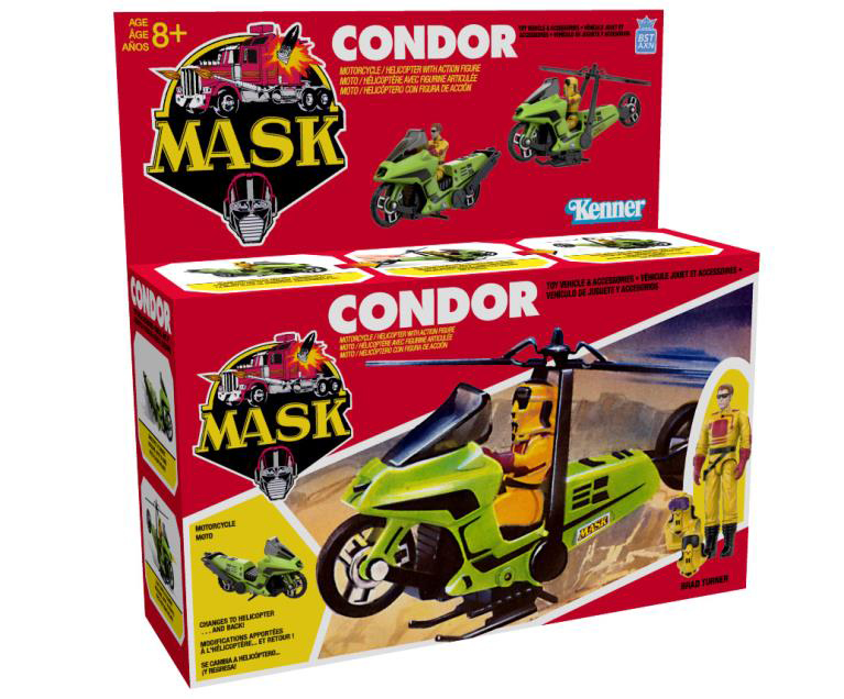 Condor est une moto verte équipée de rotors rétractables, pilotée par Brad Turner. En un clin d’œil, elle se transforme en hélicoptère d’attaque léger pour des interventions rapides.